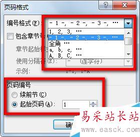 4、在頁碼格式中我們可以設(shè)置編號格式以及起始頁碼等。