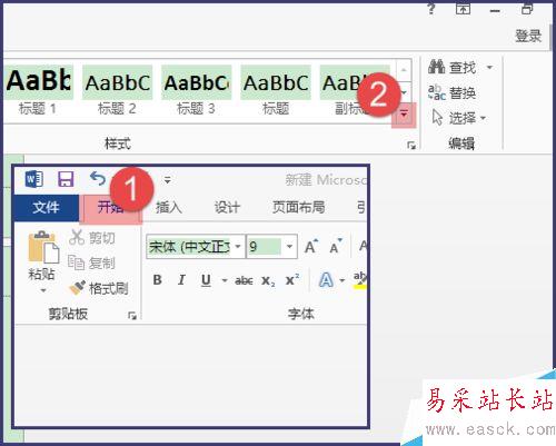 4、然后點擊【開始】下的樣式旁邊的符號。如圖所示