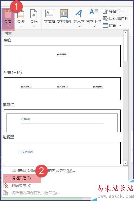 2、點擊【插入】下的【頁眉】-【編輯頁眉】