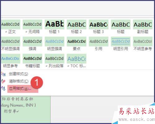 5、在出現(xiàn)的下拉菜單中選擇【應用樣式】