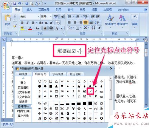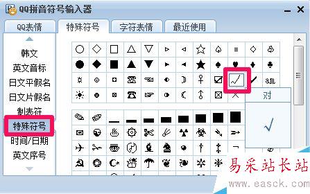 2、在輸入法的特殊符號中可以找到對鉤符號,其它需要的符號基本全可以找到。