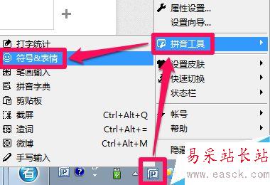 1、使用輸入法自帶的符號不僅可以在word中插入對鉤,而且還有很多字符表情。右擊輸入法,然后選擇拼音工具-符號可表情。(這里用的是QQ拼音,其它輸入法大致相同)