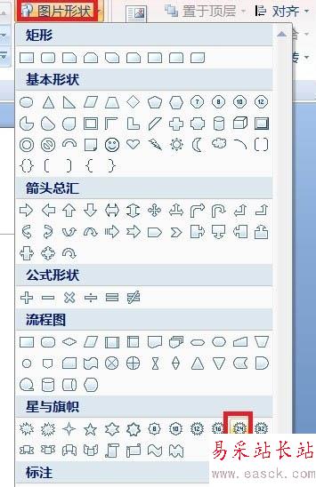 我們還可以單擊“圖片形狀”,在其中選擇任何一種形狀,如圖所示。