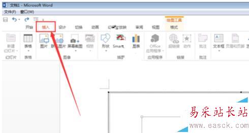 3、這時Word便捷頁面就會出現一個制作演示文稿的矩形框,選中該方框,然后點擊“插入”選項卡;