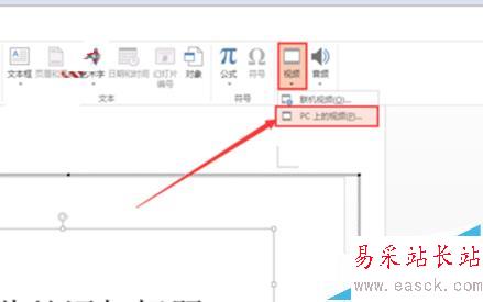 4、入插入選項卡后,這時插入選項卡中就有視頻選項了,依次點擊“視頻”>“PC上的視頻”;