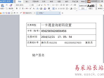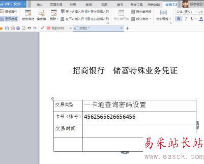 6、在最后一行輸入文字,選中文字可以上下拖動,選中表格也能上下拖動。這樣一個業務憑證單就做好了。