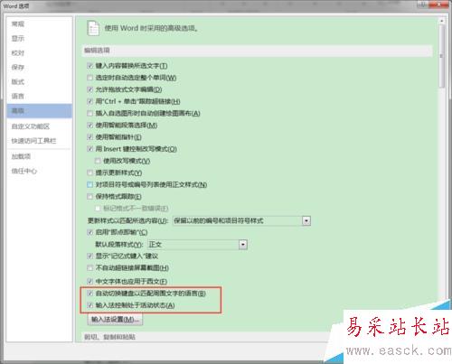 6、然后我們在下方將“自動切換鍵盤以匹配周圍文字的語言”和“輸入法控制處于活動狀態”這兩項前面的“√”點掉。