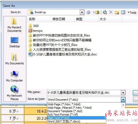 第一種辦法,點擊文件,另存為,彈出對話框,在保存類型中選擇文本文檔,點擊確定,彈出兩個設置窗口都確定,然后桌面就會生成一個同名的txt文檔
