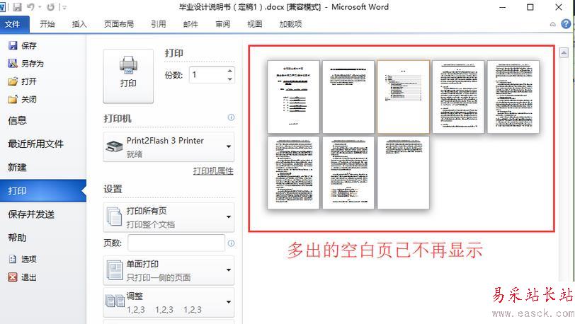 原由:想把畢業設計論文轉換成 .swf 格式時,用 Flashpaper 虛擬打印預覽發現多出一個空白頁