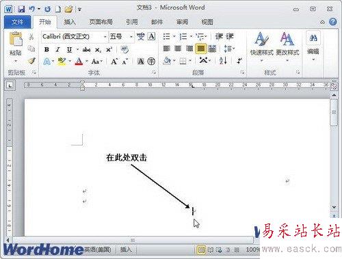 第3步,返回Word2010文檔窗口,在頁面內任意位置雙擊鼠標左鍵,即可將插入點光標移動到當前位置。
