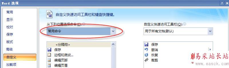 步驟1.依次單擊左上角【Office按鈕】→【W(wǎng)ord選項(xiàng)卡】→【自定義】