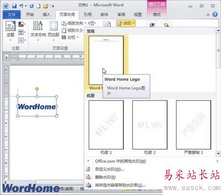 第3步,在功能區(qū)單擊相應(yīng)的庫(kù)名稱(例如“頁(yè)面布局”功能區(qū)中的“水印”庫(kù)),可以在庫(kù)列表中看到新建的構(gòu)建基塊,如圖3所示。
