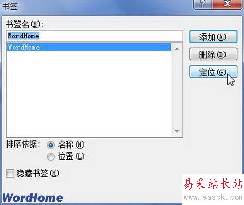 第2步,打開“書簽”對話框,在書簽列表中選中合適的書簽,并單擊“定位”按鈕,如圖2所示。