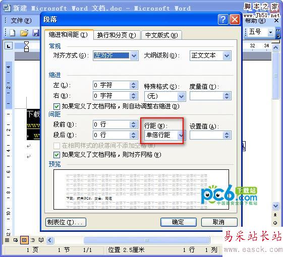 單倍行距:每行中最大字體的高度加很小的額外間距。單倍行距是 Word2003 的默認行距。