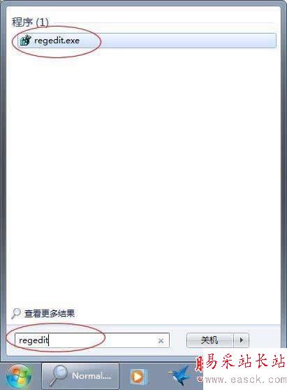方法二:打開系統(tǒng)左下方的“開始”按鈕,在“搜索程序和文件”中輸入“Regedit”,然后選擇“Regedit.exe”進入注冊表;