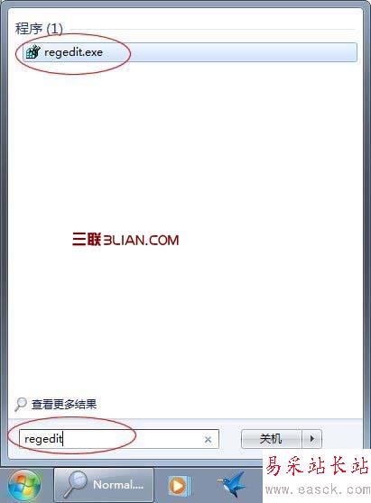 方法二:打開系統(tǒng)左下方的“開始”按鈕,在“搜索程序和文件”中輸入“Regedit”,然后選擇“Regedit.exe”進入注冊表;
