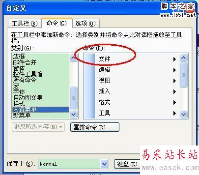 解決方法:在工具欄上右鍵單擊,選自定義,選擇命令選項,按住CTRL的同時用鼠標按住文件拖放到菜單欄上,以后就在文件菜單下調用另存為和頁面設置,也可用同樣的方法把頁面設置和另存為放到工具欄上作為快捷調用