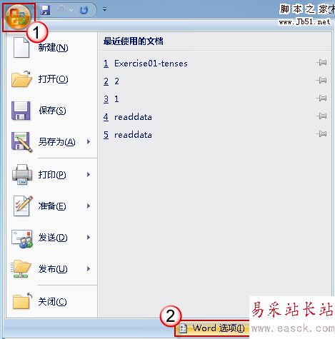 對于 Word 2007,按一下 Office 按鈕,然后單擊“Word 選項”。