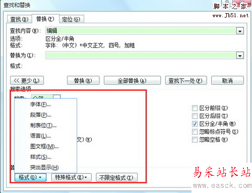 編輯注:在輸入替換文字后,可以參照同樣的方法對替換文字的格式進行設置,這樣就可以在替換文字的同時對原有格式進行替換了