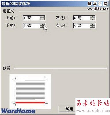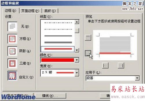 圖2010072208 “邊框和底紋選項”對話框應用段落邊框的Word2003文檔如圖2010072209所示。