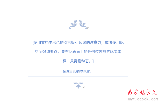 3、點(diǎn)擊其中的一種,比如【花絲引言】,即可在文中插入一個(gè)漂亮的文本框。
