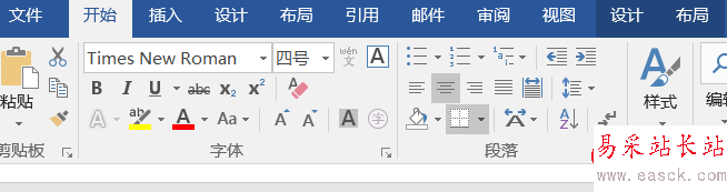 4、此時,我們發現仍然沒有居中。那么,在開始菜單欄,點擊段落向右下角的箭頭(紅框里)。