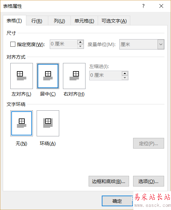 3、在“表格”選項中選擇“居中”,在“單元格”選項中選擇“居中”(不要忘了點擊確定)