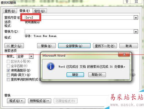 1、修改字母的字體和修改數字的字體大致一樣,不同點在于,需要在“查找內容”里面輸入【a-z】,意思是查找小寫字母a到小寫字母z的所有字母。接下來的操作和修改數字字體一樣。