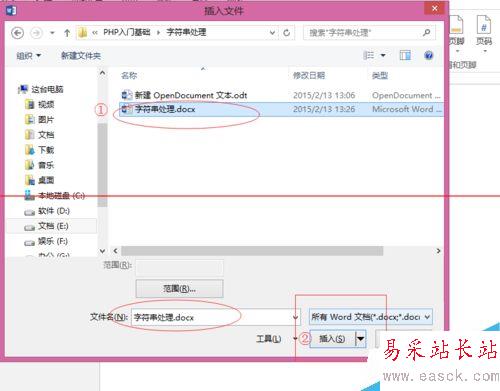4、在彈出的窗口中選擇無法復制的文檔 然后點擊插入