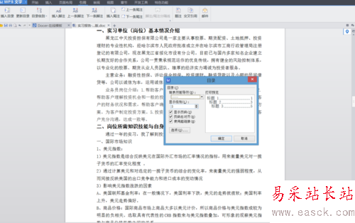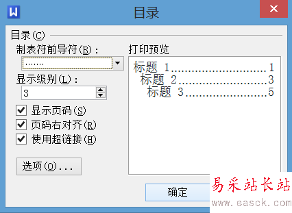 5、在出現的對話框上選擇相關設置,例如:制表符,顯示級別,頁碼等。