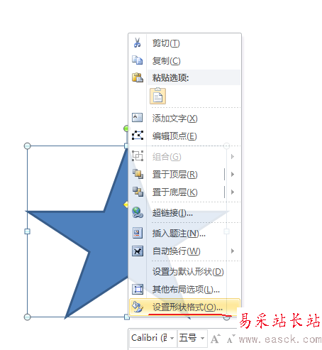 3、選中五角星,右擊,選擇‘設置形狀格式’