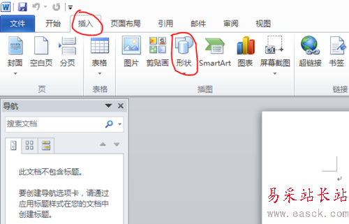 1、打開word,工具欄中選擇‘插入’,接著選擇‘形狀’