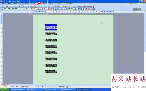 2、然后,“雙擊”——“工具欄”中的格式刷工具,這時候鼠標的指針會始終保持著格式刷的狀態。