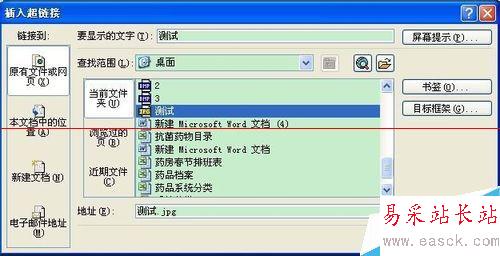 在“超鏈接”對話框中,選擇好需要操作的內(nèi)容,比如圖片、文檔等,點擊“確定”。