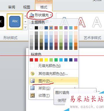 3、單擊,‘形狀填充’,下拉列表中選擇‘圖片’