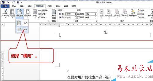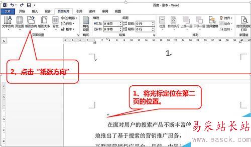 將光標(biāo)定位在第二頁(yè)的位置。點(diǎn)擊“紙張方向”