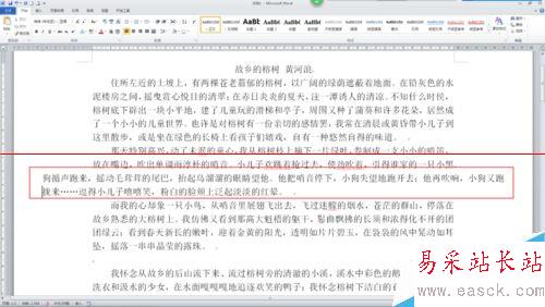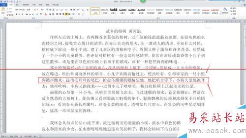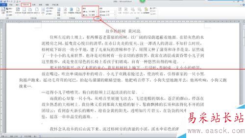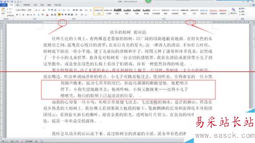 2、我們以第二段第三行為處理目標進行頁邊距調整。