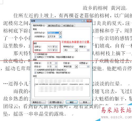 7、當左右縮進值設置為,左右均為-5.5字符時,效果如下。顯然這種情況不是我們所需要的最終狀態,我們介紹完第二種方法后再繼續操作。