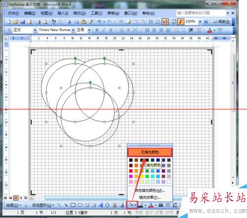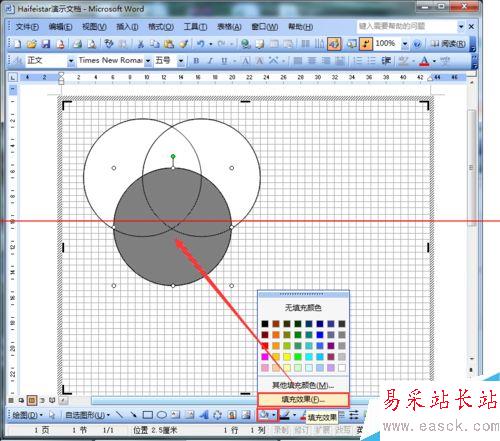 7、先將“下圓”的填充顏色改為“白色”,再將“右圓”的填充效果改為第2種“圖案”,達到下圖所示的效果。
