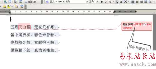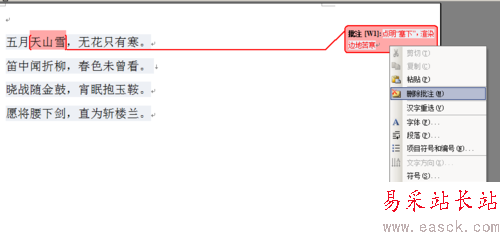 2、打開文檔后如圖所示,接下來刪除“天山雪”的批注