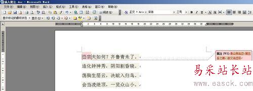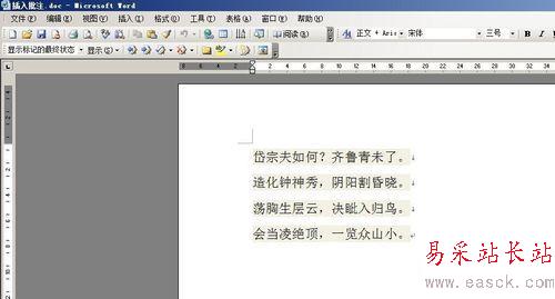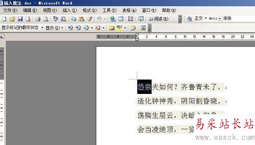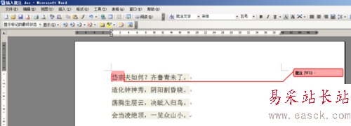 2、接下來對(duì)文檔中的“岱宗”二字,進(jìn)行批注