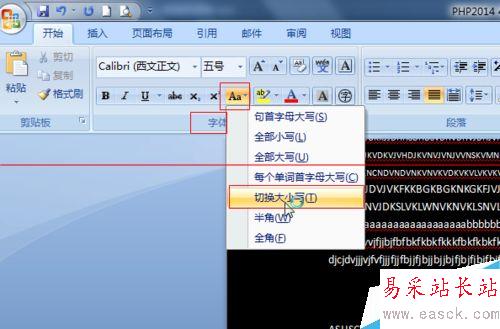 3、原因不解,但可以解決,只要在“字體”-“Aa”(更改大小寫)-“切換大小寫”上點擊即可讓一直大寫的字母還原,不再是沒按大寫鍵輸入的是大寫字母的情況!!!