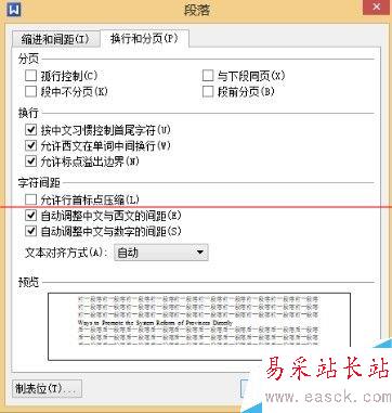 4、全選段落-右鍵-段落-換行和分頁-允許西文在單詞之間換行-去除勾選,這樣英文單詞就不會(huì)上下斷行