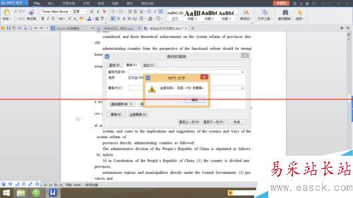 3、替換完成后會(huì)提示總共替換了多少處空格位置