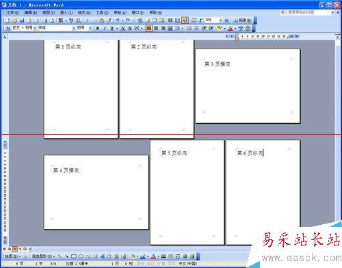 1、演示文檔如下,第1、2頁為縱向頁面,第3、4頁為橫向頁面,之后又是縱向頁面。【需要注意的是,不同方向的頁面之間都是插入了“分節(jié)符”進行了分節(jié);這里不再介紹如何分節(jié)。】