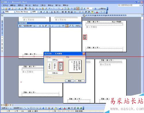 6、鼠標選中頁碼3的黑框,選擇如下圖所示的文字方向。