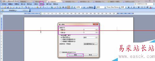 1、點擊上發工具欄中的“表格”,在選項卡中點擊“插入”,就會出現以下對話框,設置列數和行數,單擊“確定”。