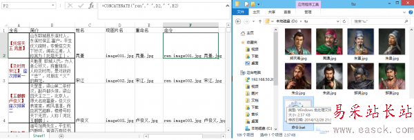 最后,復制F列中的數(shù)據(jù)到文本文件中,將這個文本文件和頭像圖片保存在同一個文件夾中,并將它的擴展名改為.bat后雙擊運行它。這樣,圖片文件就全變成中文了。
