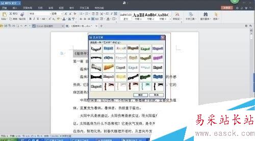 6:點擊“藝術字”按鈕,這時會彈出“藝術字庫”對話框。選擇需要的藝術字樣式后點擊“確定”按鈕。