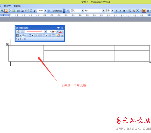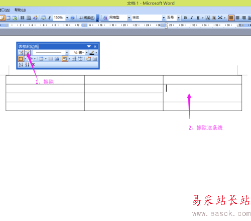 選擇表格邊框欄中的擦除工具,擦除掉一條線。